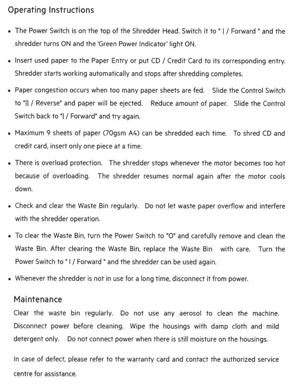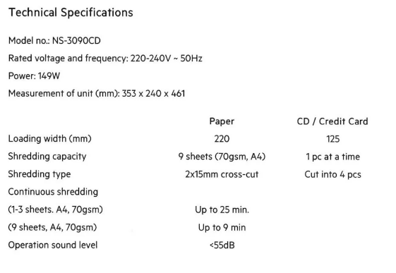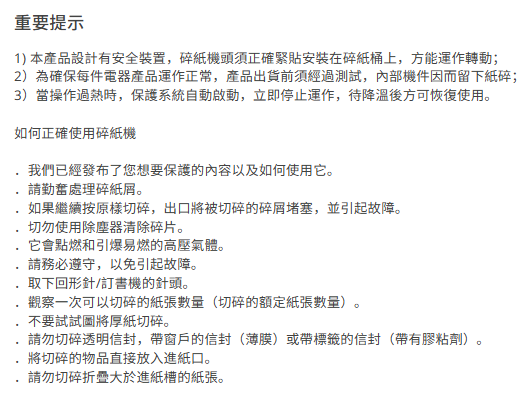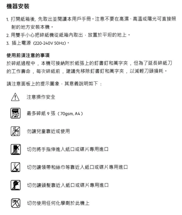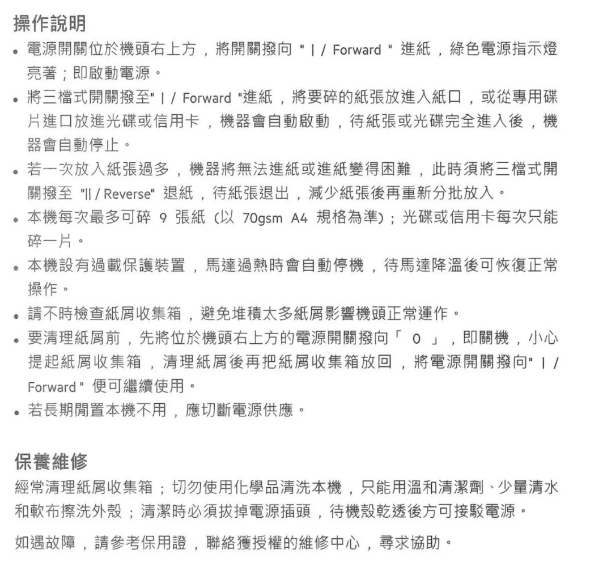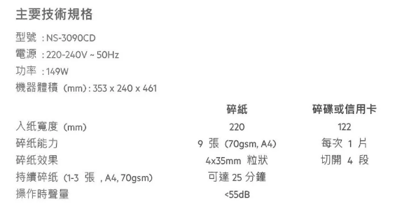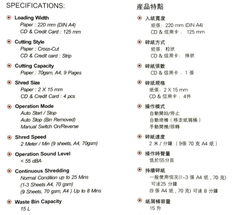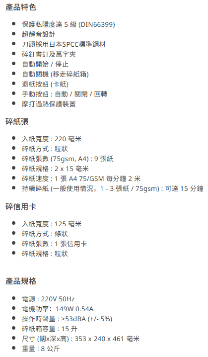 *一般使用情況(l-3 張/75g)可持續碎紙高達15分鐘